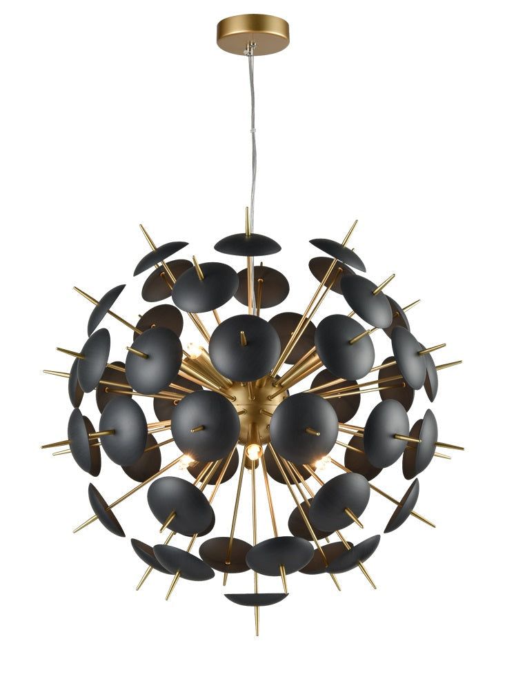 In matt gold with matt black discs around the outside. Suitable for dimming if used with mains voltage halogen lamps. LED G9 lamps may be used but suitability for dimming will depend on the lamp and switch used.
