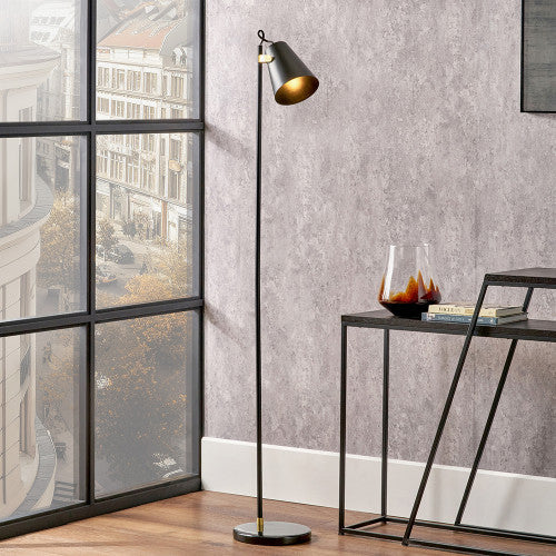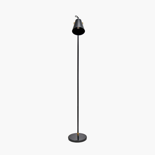 This stylish and versatile task floor lamp is finished in black metal, brushed brass metal and a contrasting black marble base, the perfect melange of materials. The movable head ensures that the light source can be pinpointed to where you need it the most.
