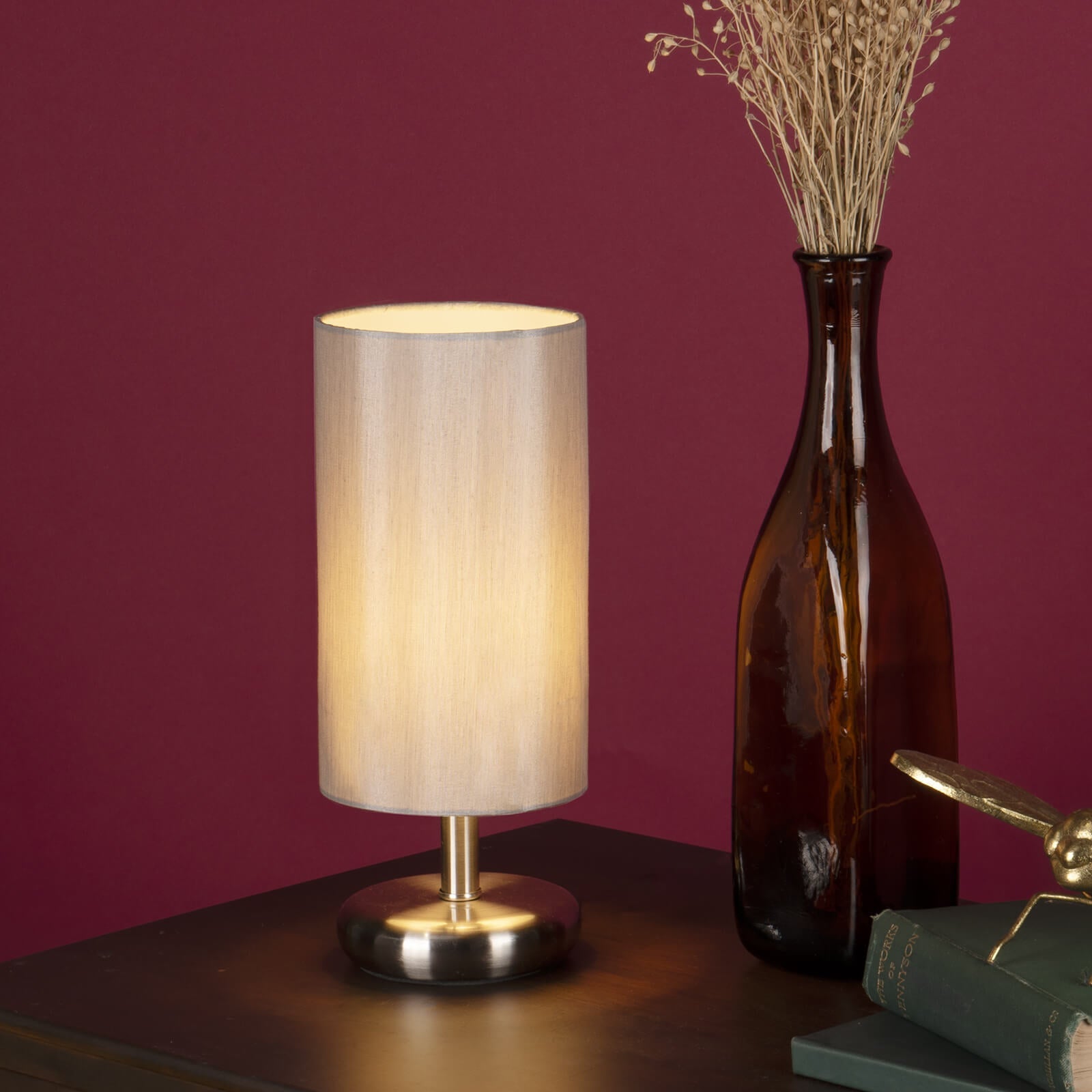 Tico Touch Table Lamp Satin Chrome With Grey/Ivory Shade E14