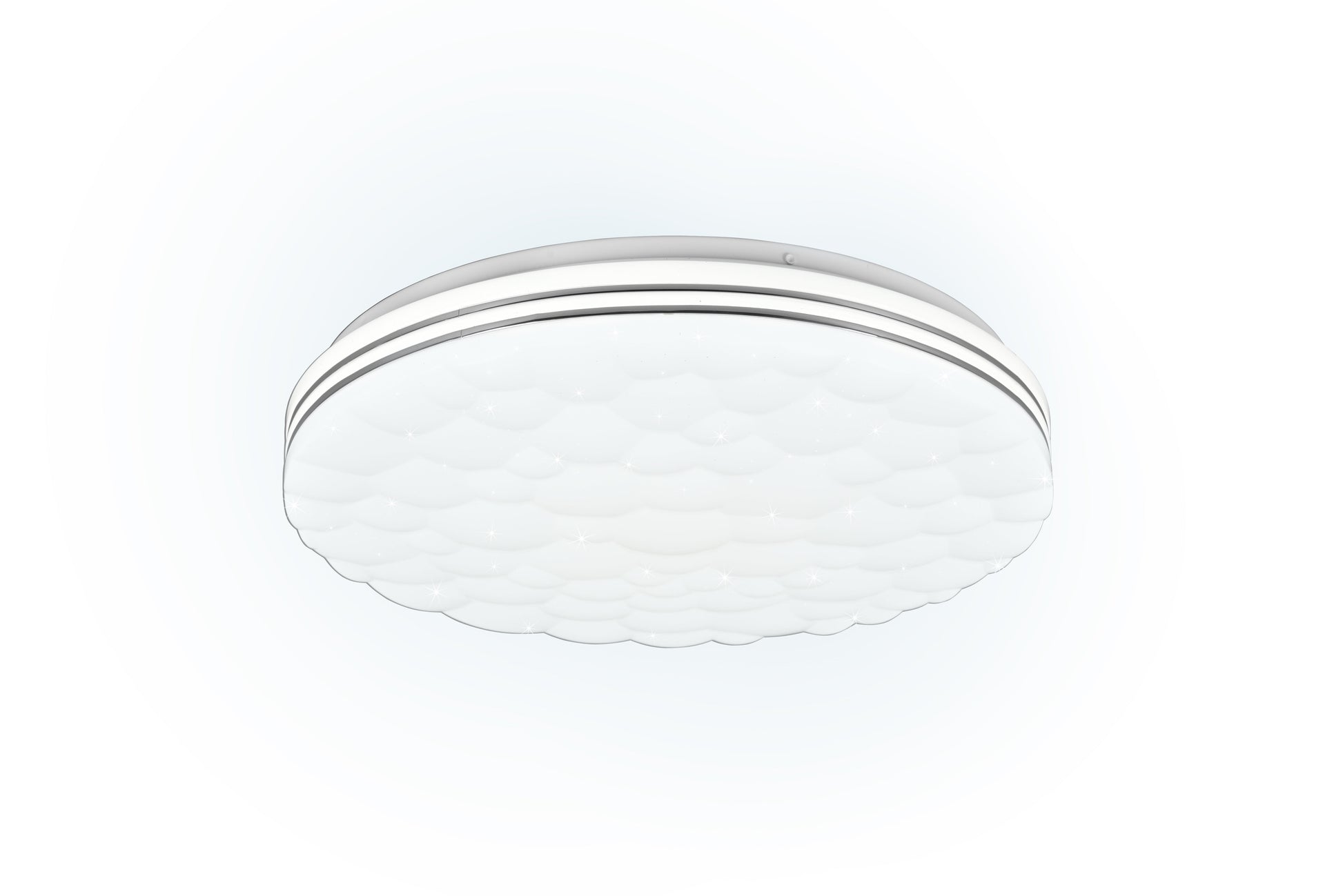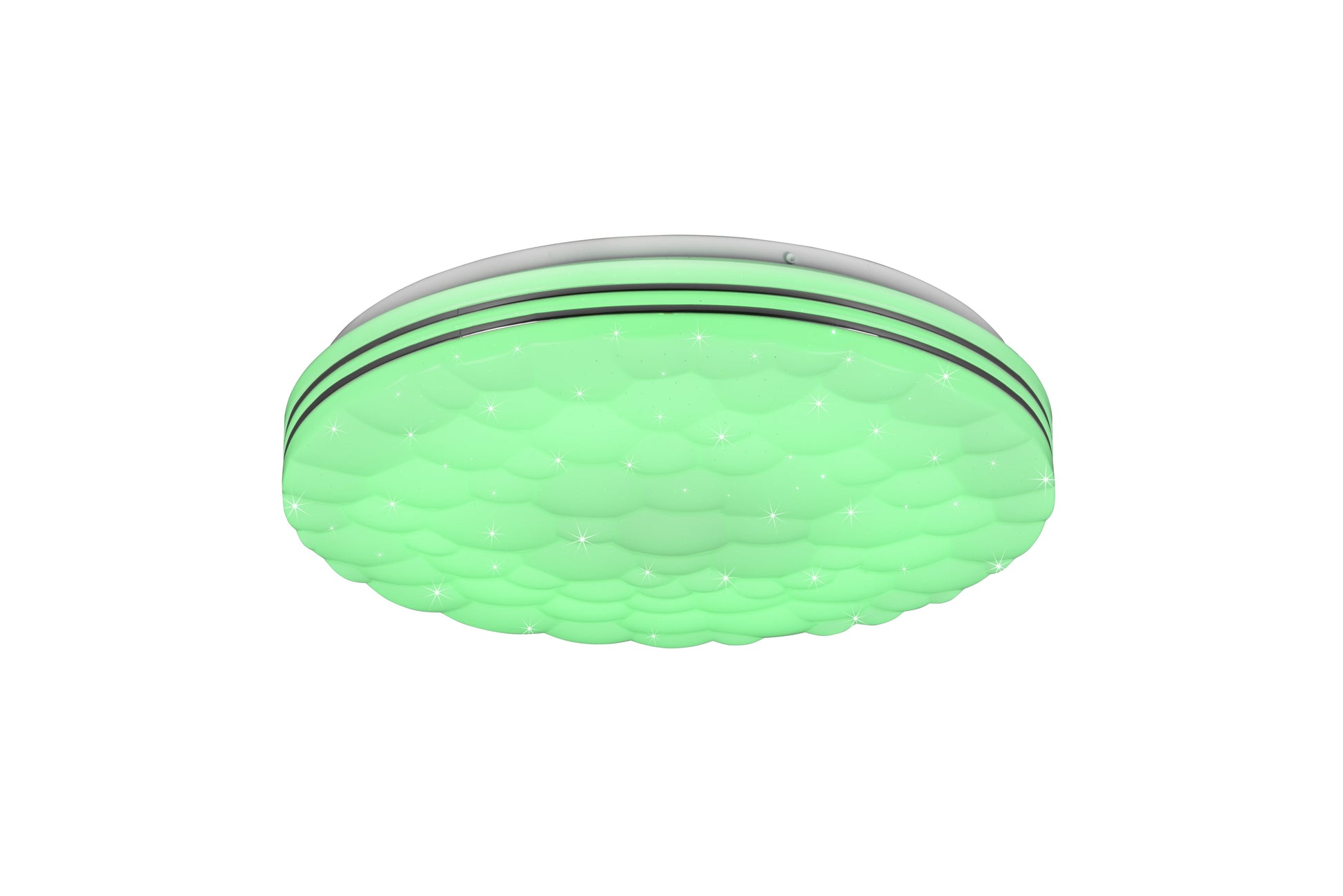 The TIGER ceiling light convinces all along the line with all its functions and its extraordinary design. By means of a remote control included in the scope of delivery, the light colour as well as the brightness can be controlled steplessly and individually. In addition, the TIGER inspires with an integrated RGBW Rainbow effect that reflects the rainbow. If required, the integrated night light can also be switched on. Thanks to its round design in white plastic, the luminaire can be integrated into all interior styles. In addition, the luminaire features modern LED technology, which is characterised by high light quality and energy efficiency. Compared to conventional halogen lamps, up to 80% of energy costs can be saved. In addition, LED light sources have a long service life, produce less heat and protect the environment.