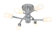 The Topaz is a sleek 6 light flush ceiling fitting finished in polished chrome and with opal glass rectangular shades. The full Topaz collection consists of matching items including wall lights and a table lamp.