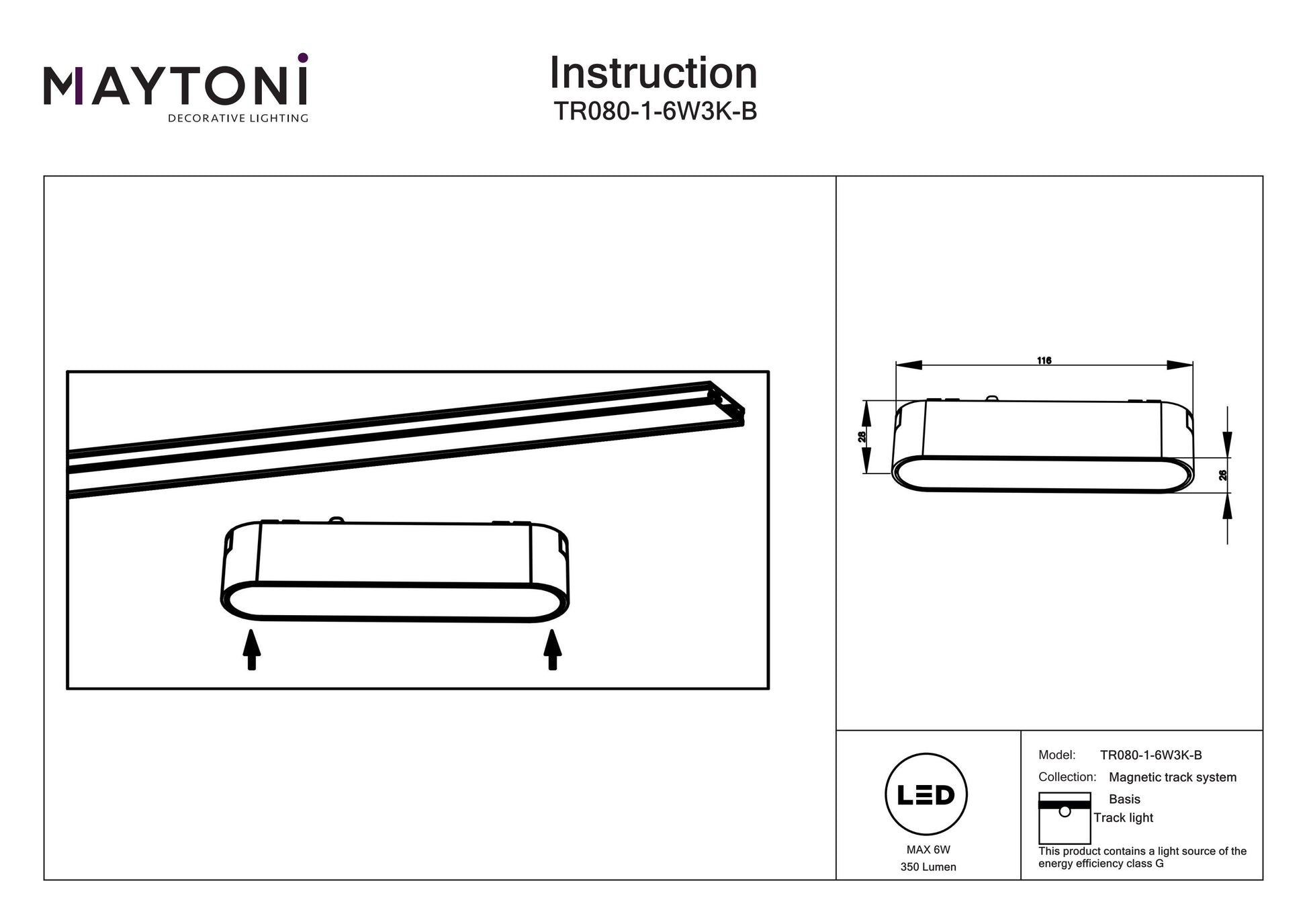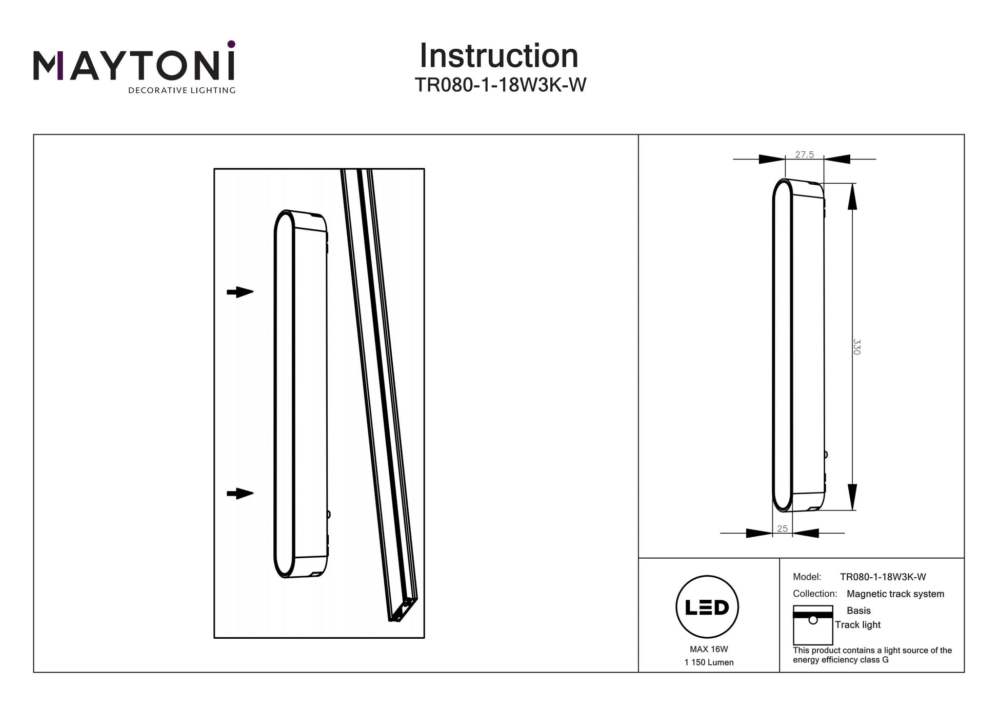 Track luminaire Basis Radity 120°