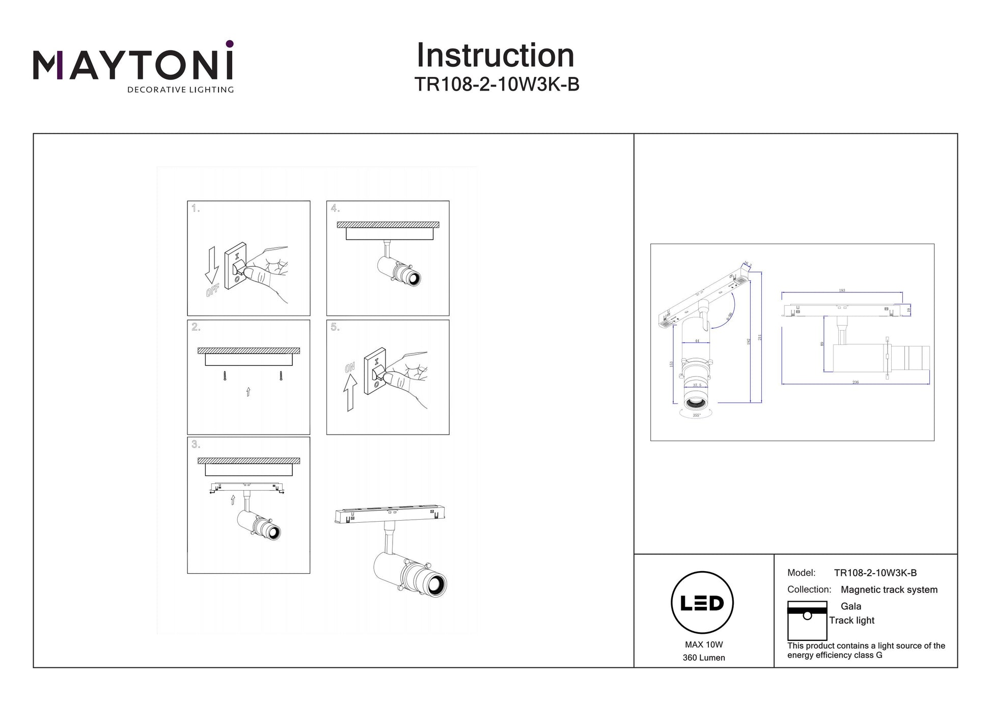 Track luminaire Gala Exility 3000K 10W 20°-35°