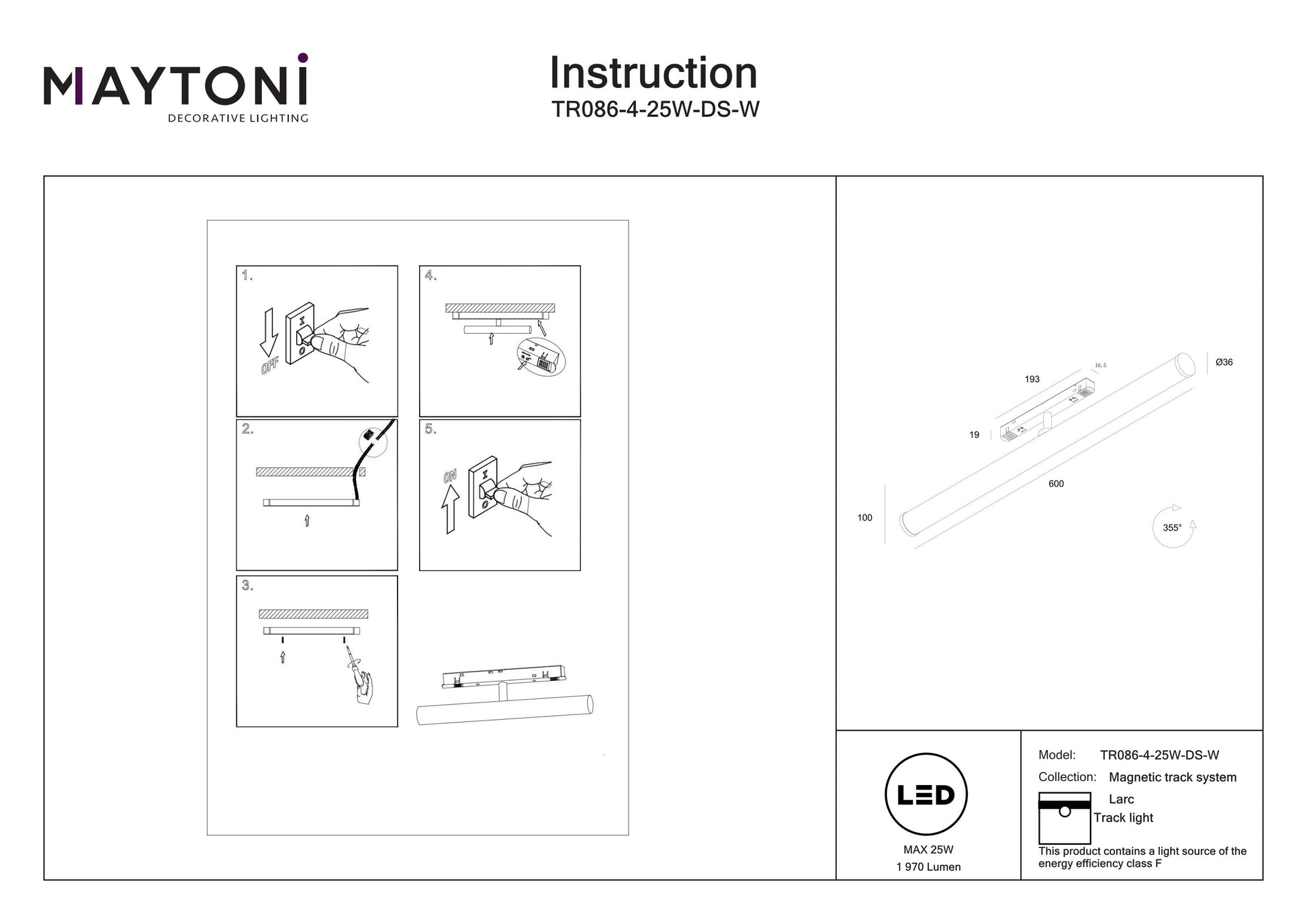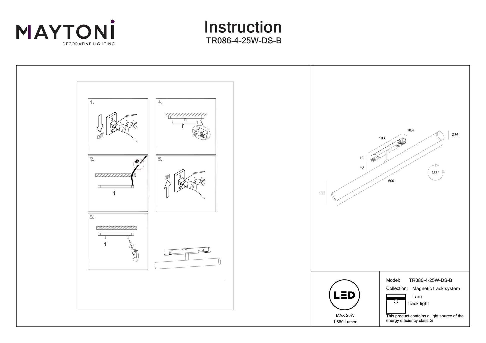 Track luminaire LARC Exility 2700-6000K 25W 360° Dim Smart