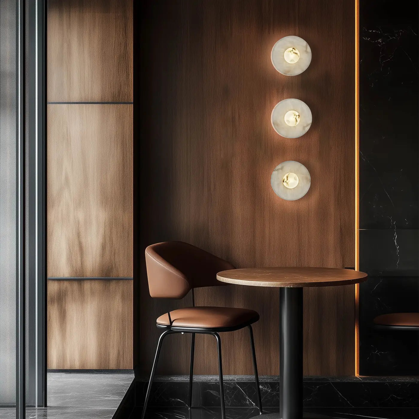 Shade Material Travertine back dish & Alabaster central flat globe |