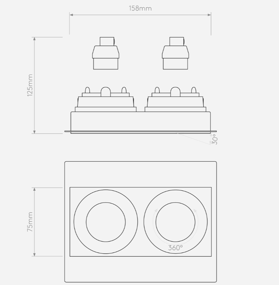 Our interior Trimless Square/ Round Twin Adjustable downlight must be installed before final plaster skim.