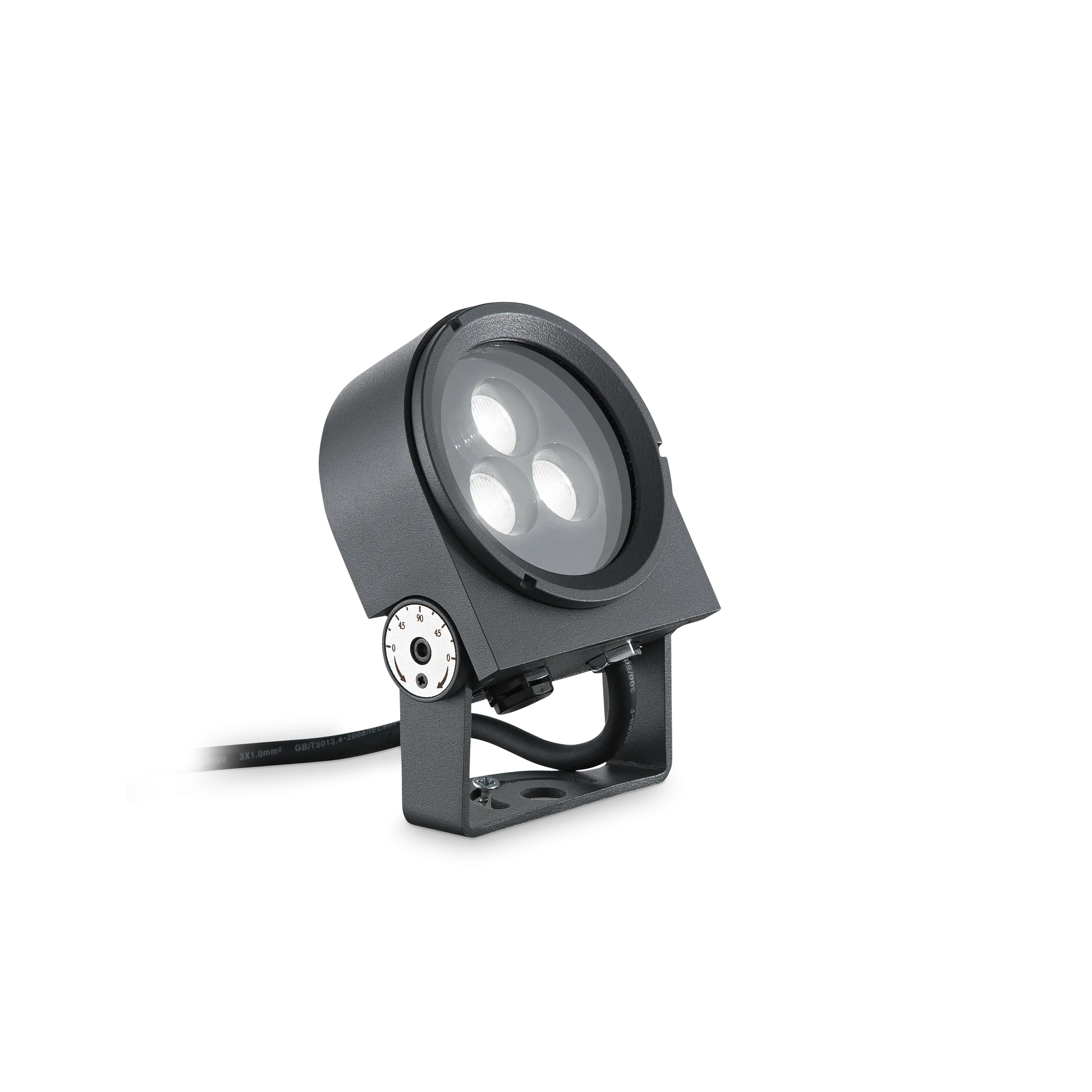 Adjustable surface-mounted spotlight, suitable for general or accent lighting outdoors. IP65 protection rating, IK06 impact resistance.