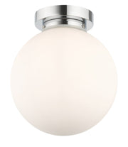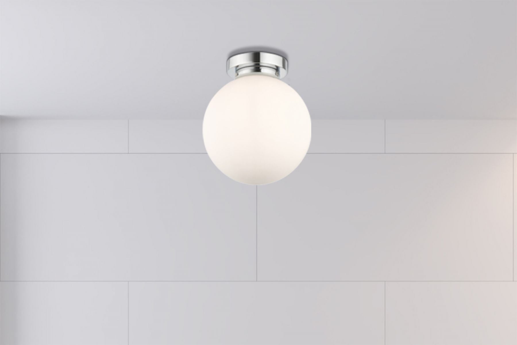 Vanity 1 Light Flush IP44 - Matt Black/Polished Chrome with Opal Ball