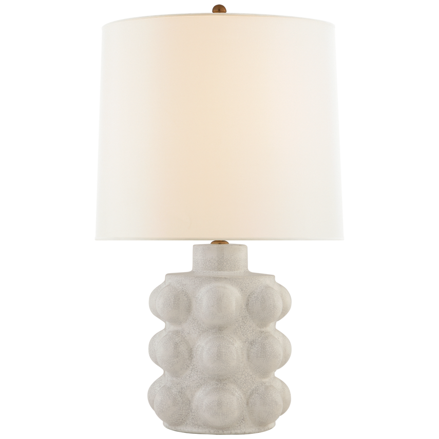 Inspired by mid-century French ceramics, the Vedra by AERIN features a sculpted multi-orb design with a reactive glaze finish. Retro aesthetics and warm lighting will effortlessly illuminate and enhance any library, home office or living room.