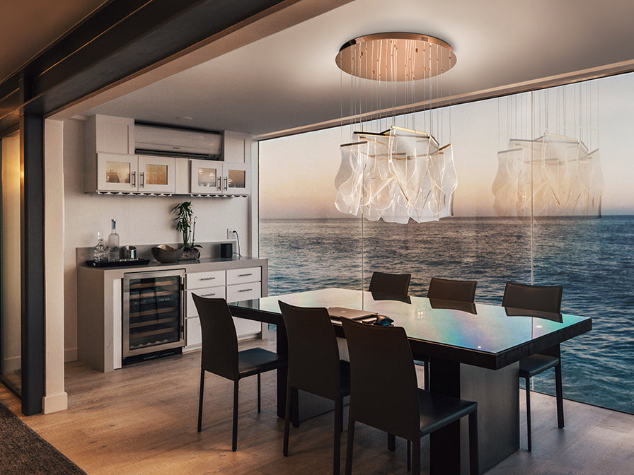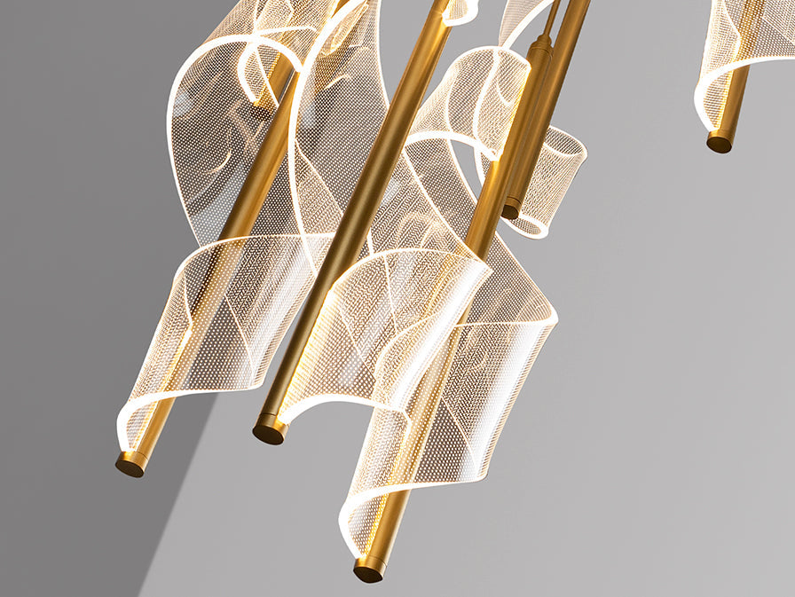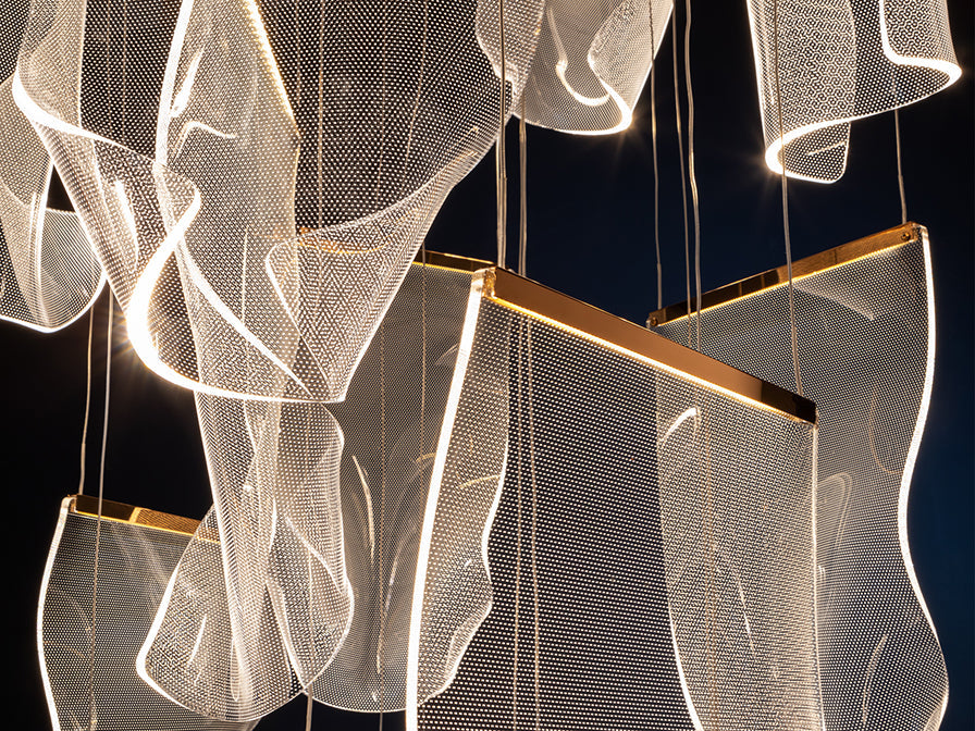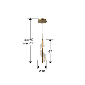 Lamp made of metal and aluminium, matt gold finish. Microprinted methacrylate molded diffusers. Adjustable height. LED 10.5W 455 lm 3.000K.