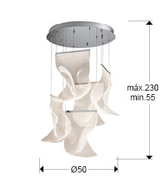 Lamp made of metal, rose gold finish and molded micro-printed methacrylate shades. LED lighting 25W, 1.500 lm, 3.000K. DIMMABLE.