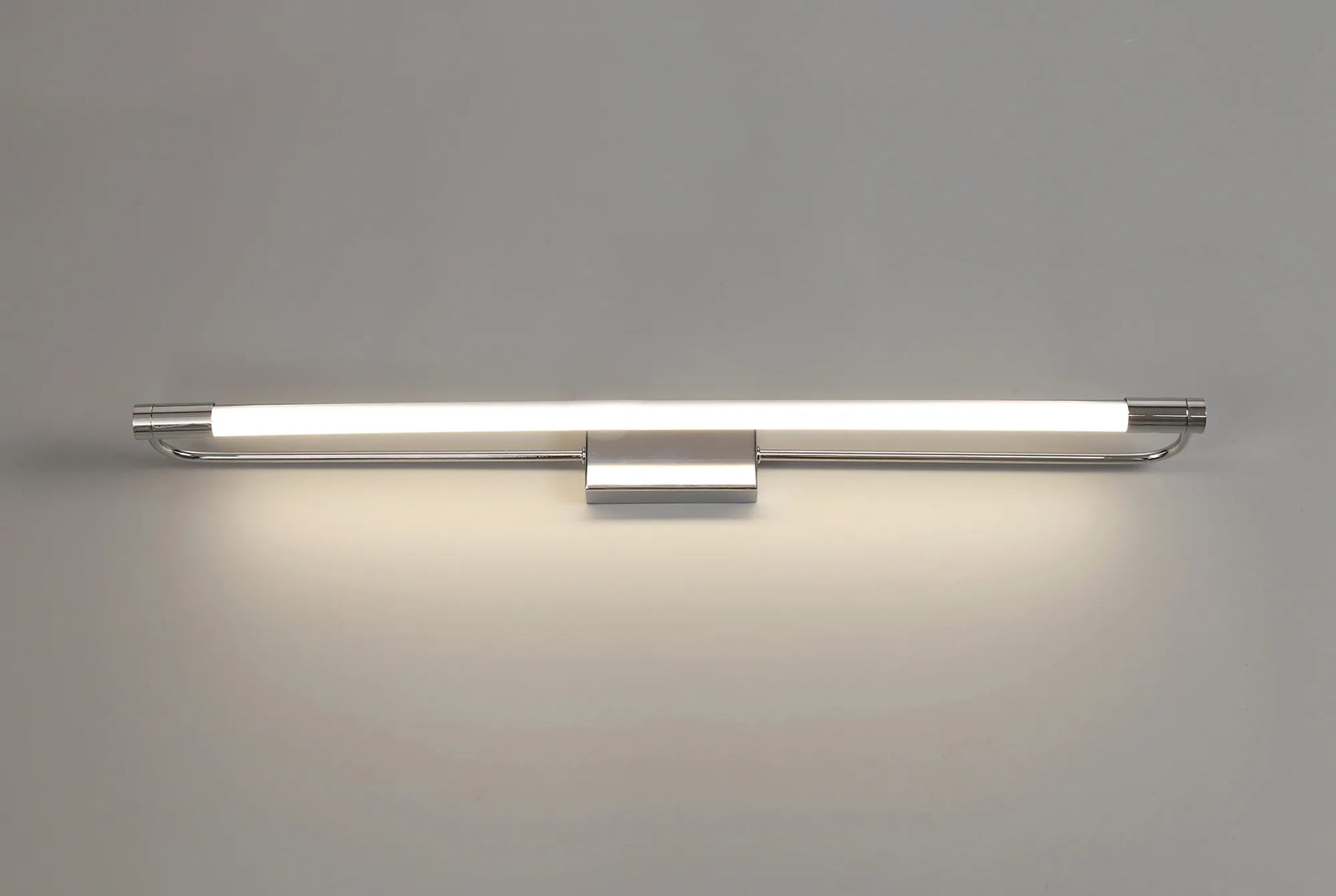 This sleek tubular design is ideal for usage in bathrooms of any size. With an IP44 rating, Villeby's form inhabits a minimal area of space whilst still emitting a high powered 14W in a cool 4000K light, with an impressive lumen output. It's polished chrome frame and opal white diffuser effectively complement the modern effect of this wall lamp.