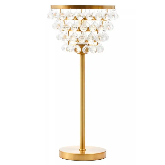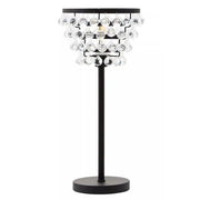 This table lamp boasts a network of clear crystal beads which narrow down to expose a black metal finish rod. The lamp creates a sparkling effect when lit which adds glamour to any room.