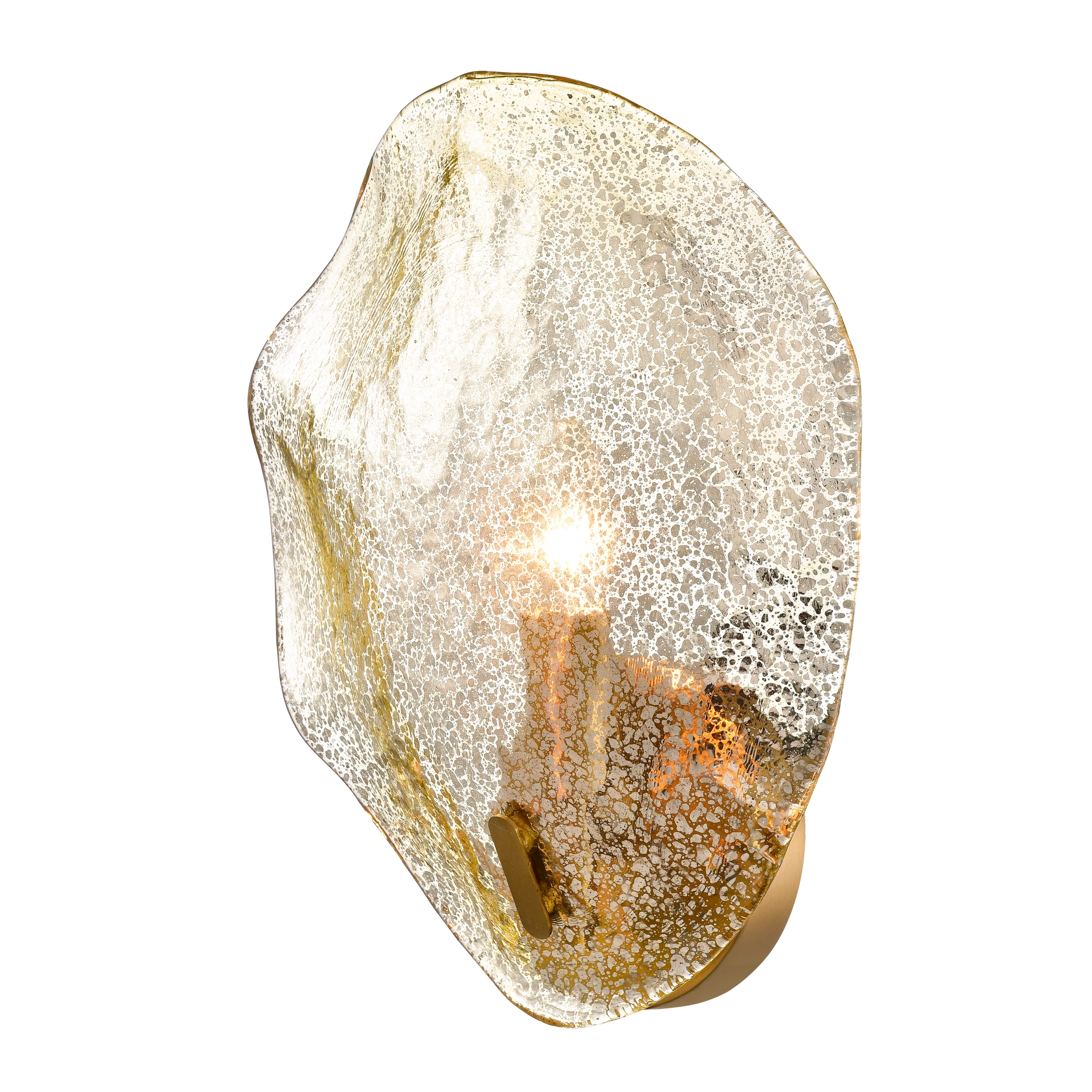 – Introduce warm, diffused light with a thick amber glass shade with a shimmering mercury-colored coating.