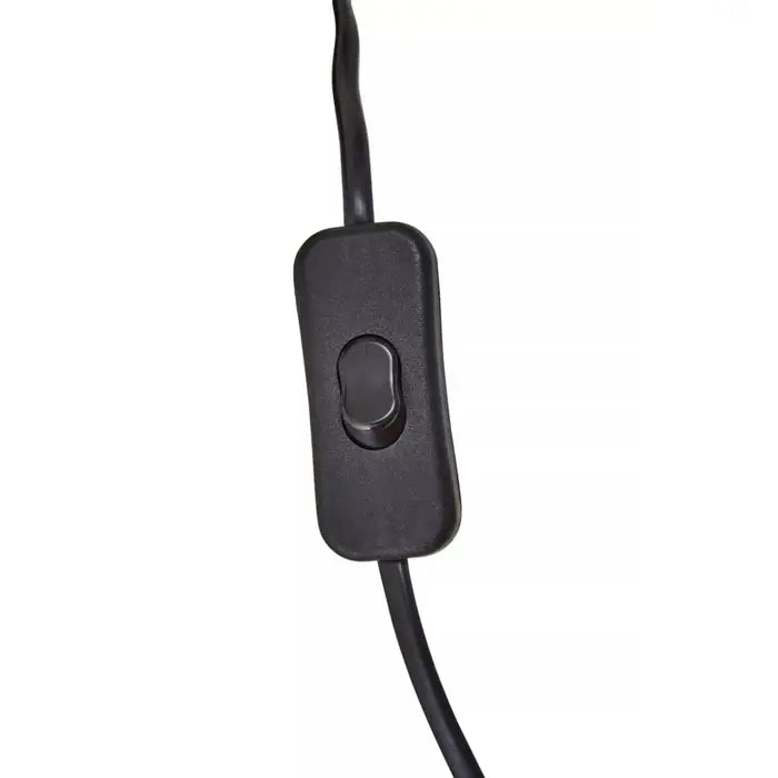 This lamp features a unique stem of two gold finish metal rods supporting the black metal shade and contrasting the thick white marble base. The black metal shade is capped with a gold finish metal circle, which elevates the lamp's luxe aesthetic.