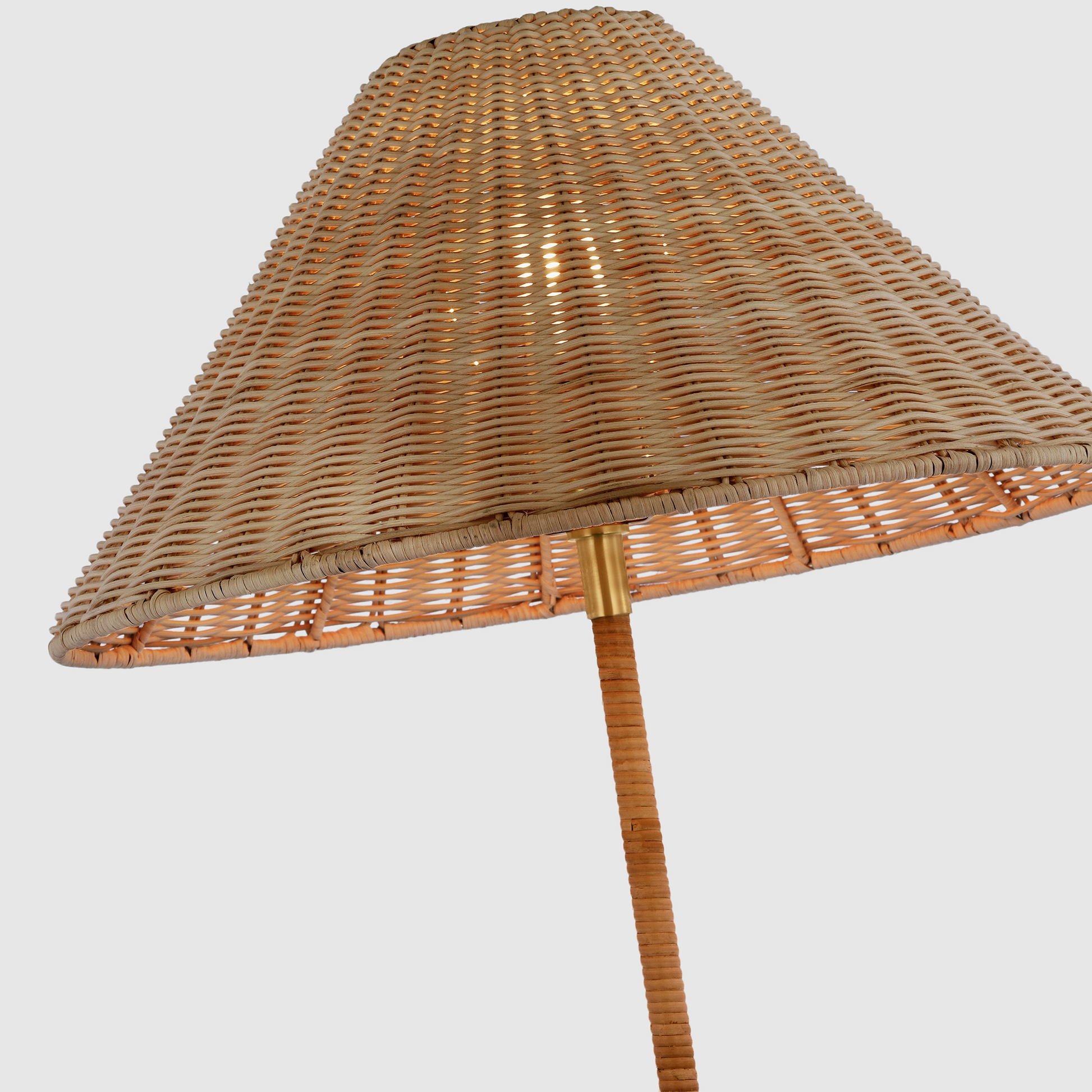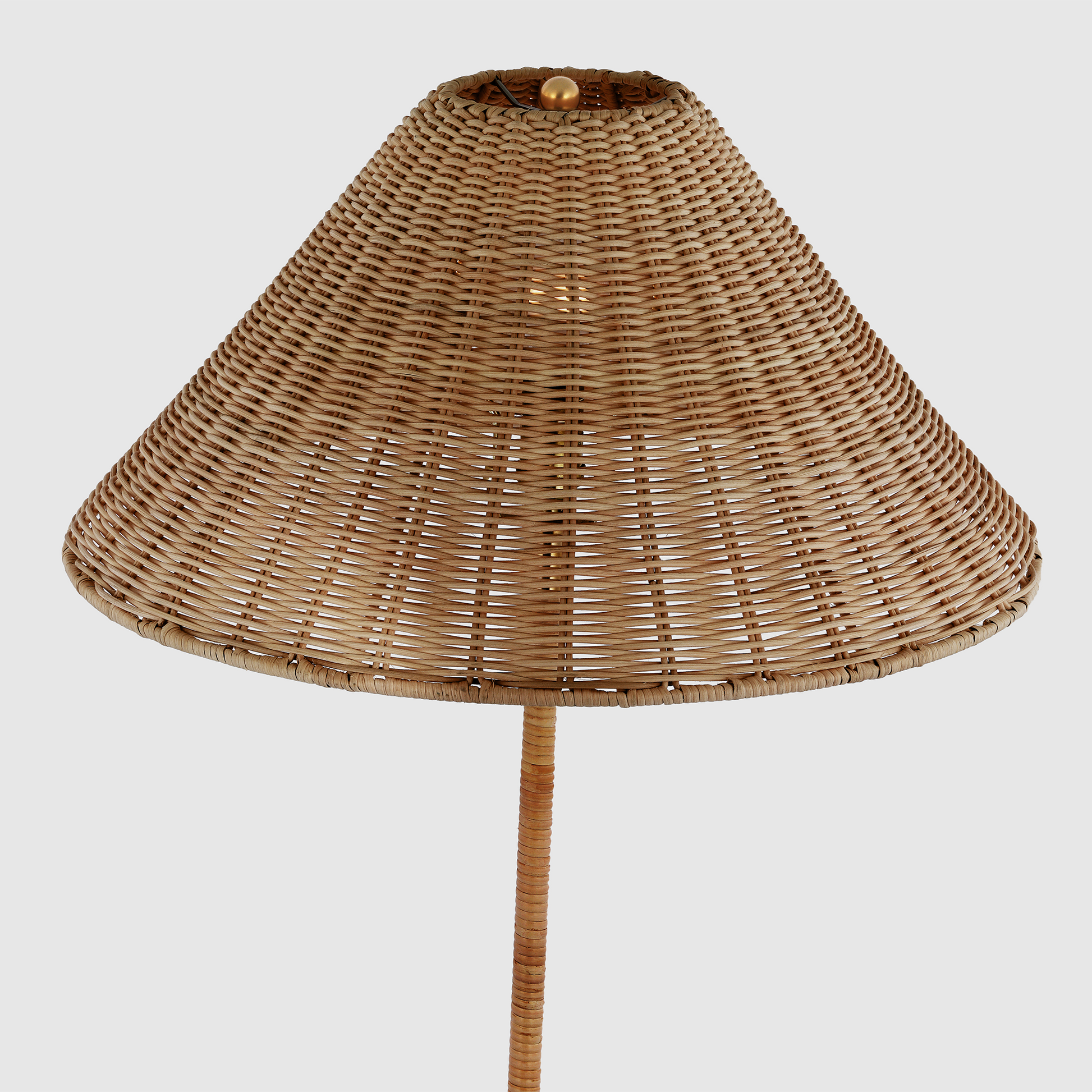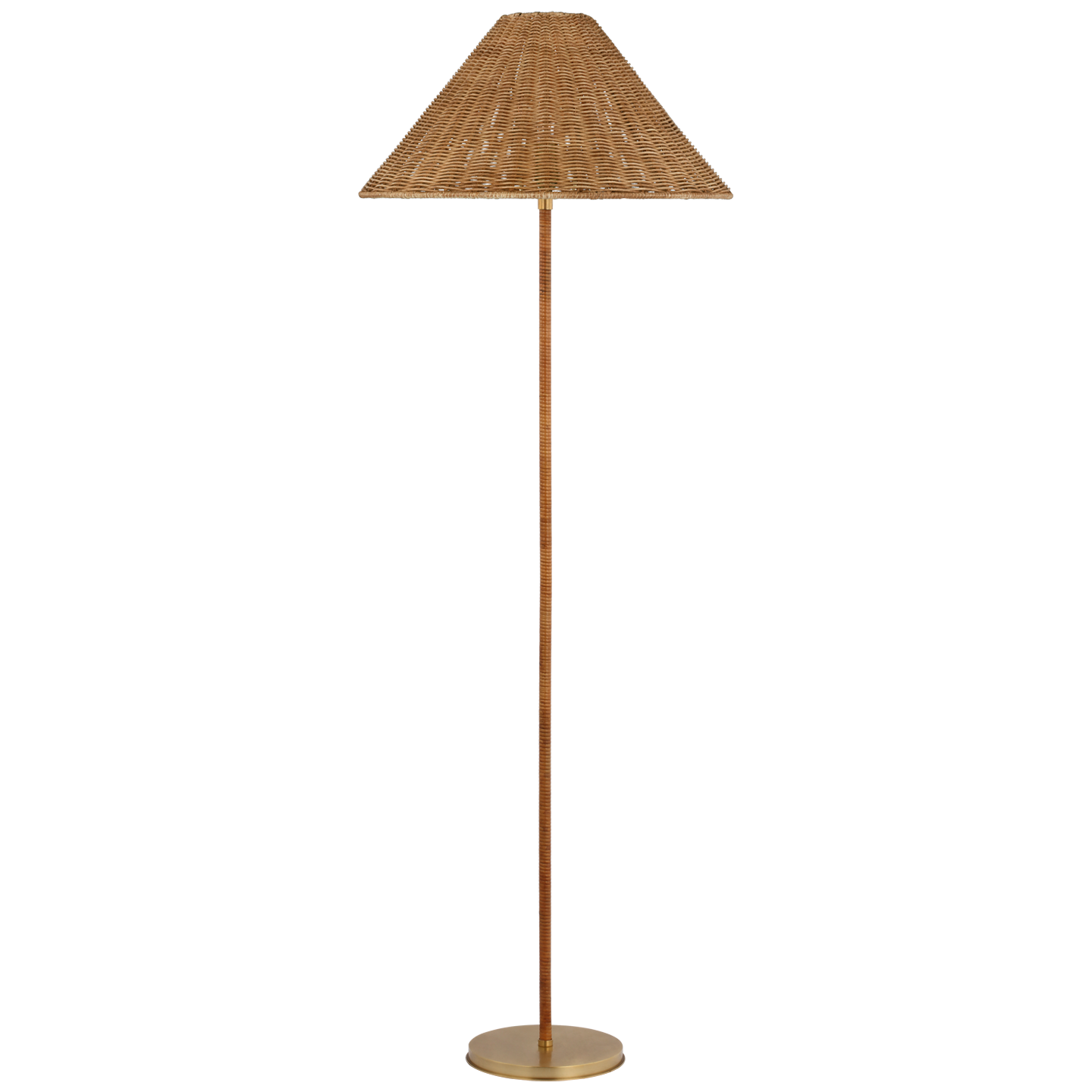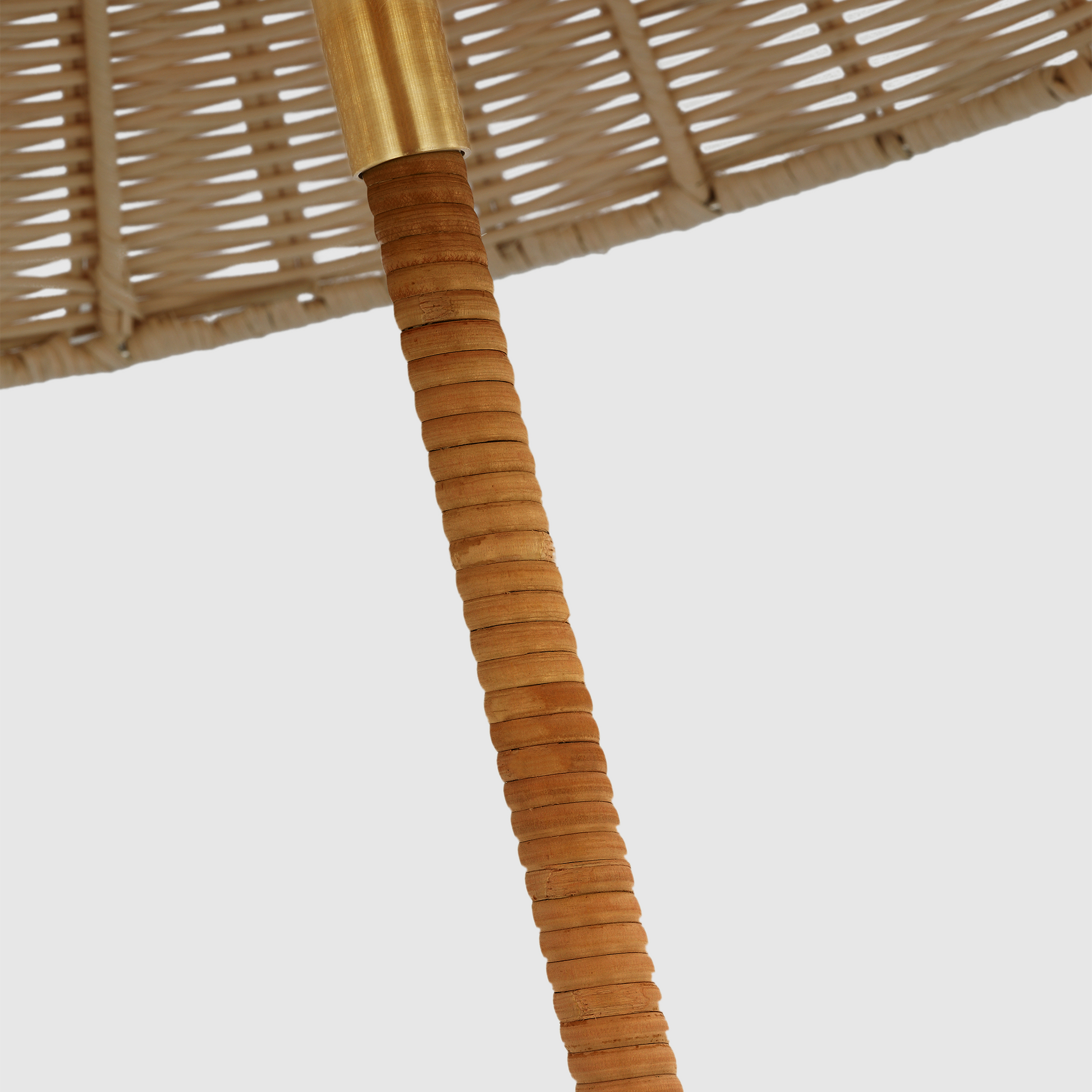 The Wimberly by Marie Flanigan combines organic materials with refined metals. The linear, wrapped floor lamp is topped with a wicker shade, while the articulating wall light (with single or double arms) comes in polished nickel with a natural wicker shade or in soft brass with a white one. The Wimberly will add the right mood and ideal lighting for any living room or study.