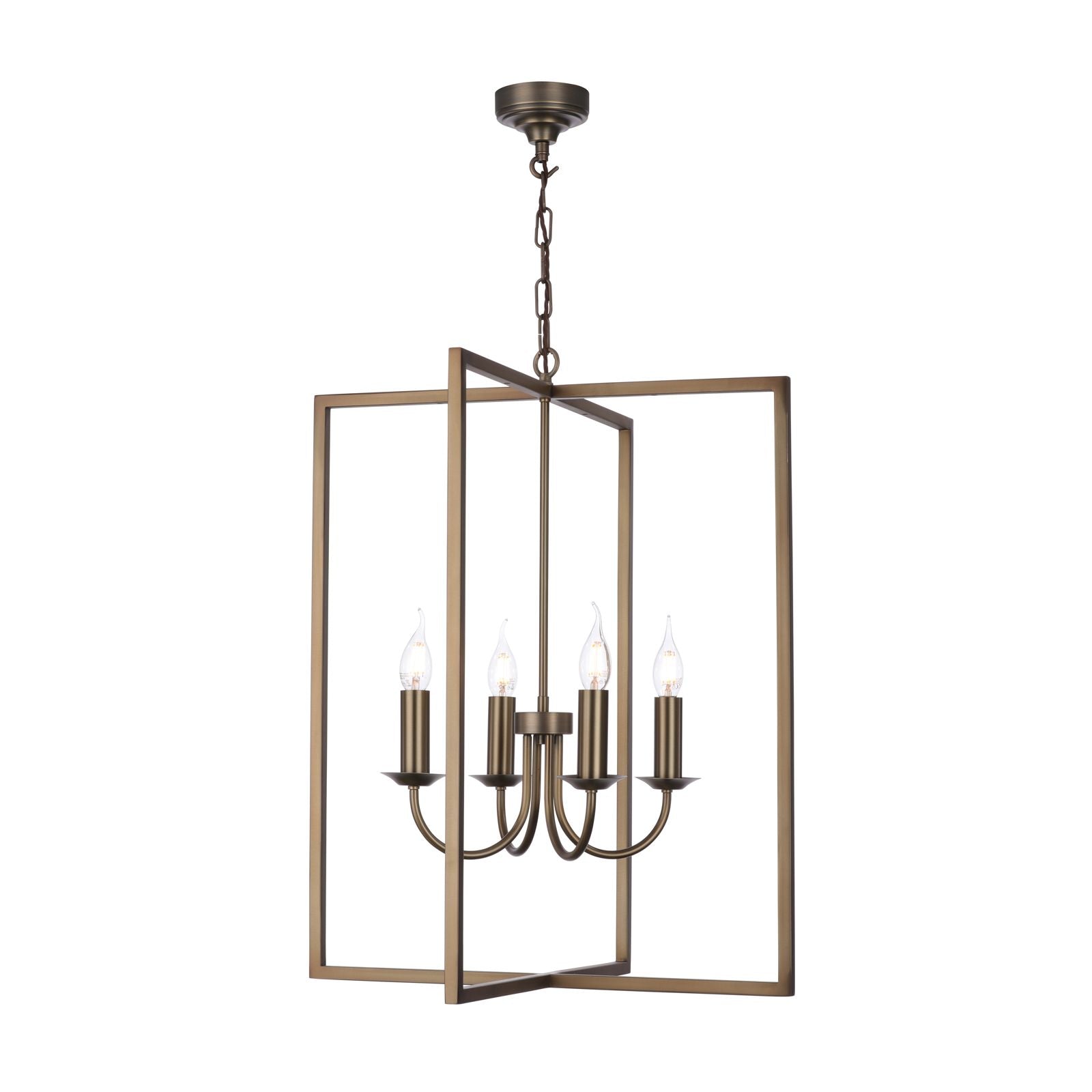 The Windsor collection of pendants showcases an angular cage in two styles. An elegantly simple four light and more dramatic bespoke shaded three light. Both fittings available in Antique Brass and Antique Silver finishes. This versatile range will suit a variety of settings in the home, giving a stunning focal point.
