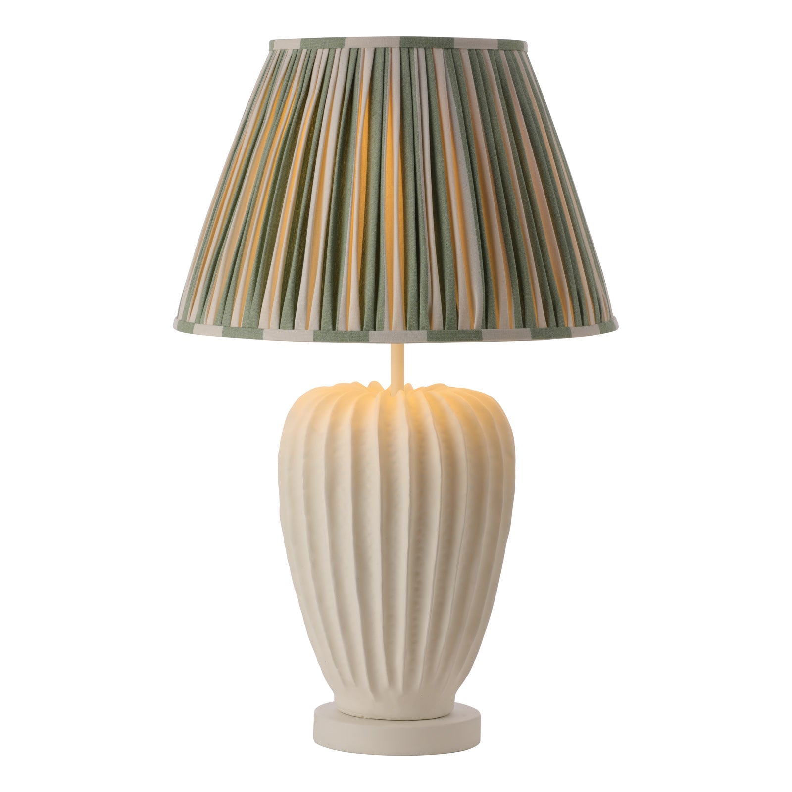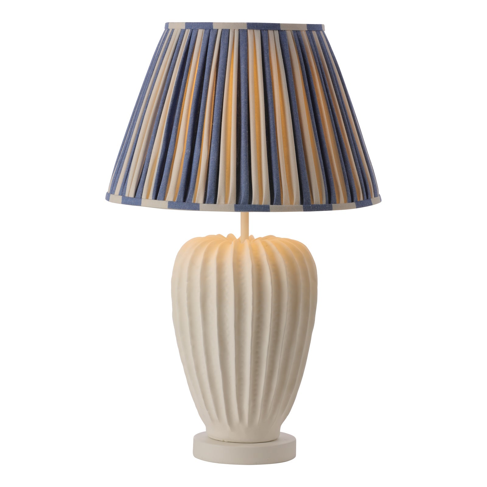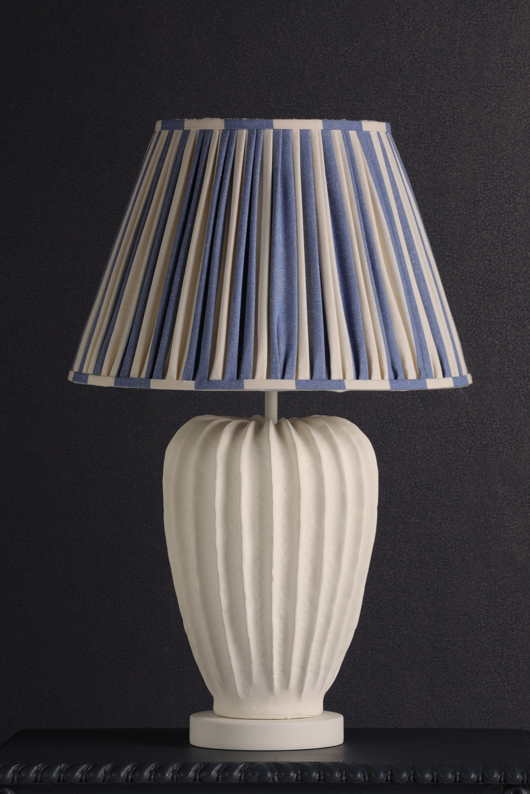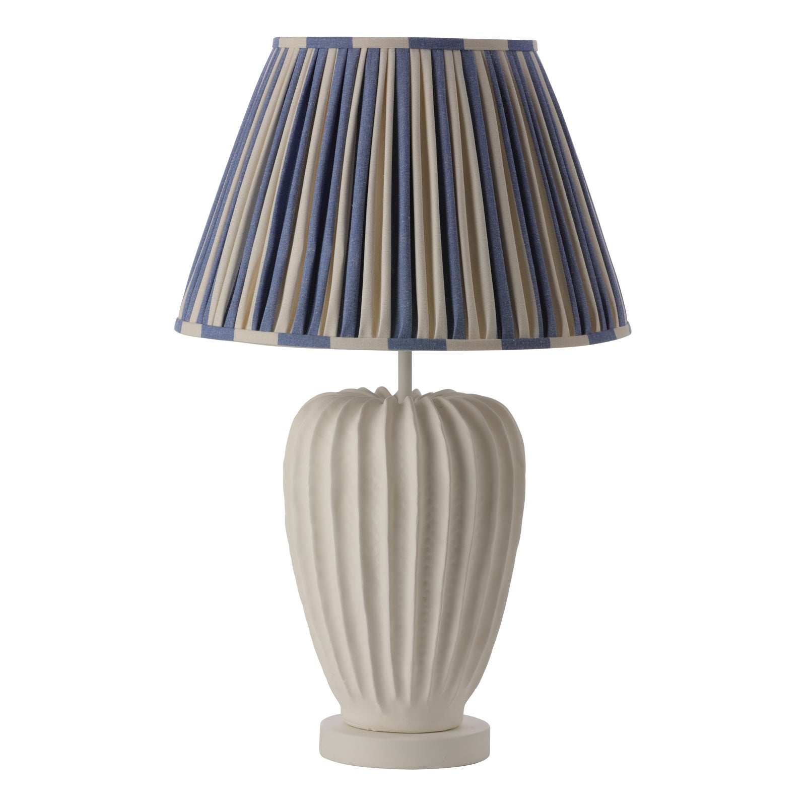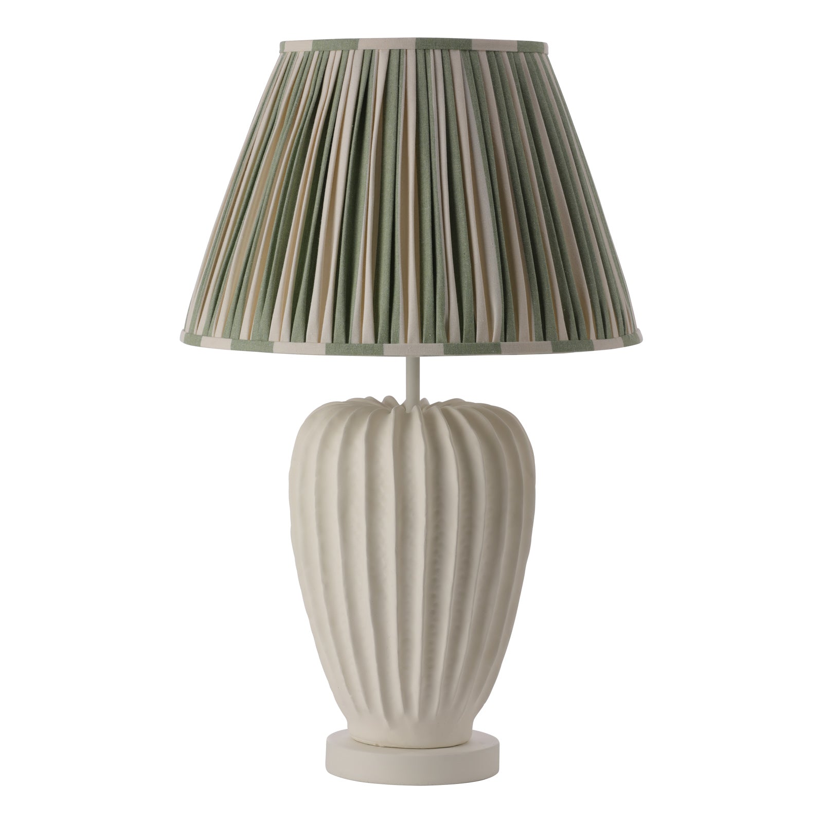 Taking inspiration from the humble cocoa bean, our Wisley table lamp has been named after the home of one of the renowned Royal Horticultural gardens. Its furrowed design is available in two colour ways. Our rich Veridgris with its hand painted copper highlights or our new soft Chalky White finish. Featuring branded hardware and twisted braided cable. Shown with either our bespoke Empire shades or our hand made pleated shades, to be ordered separately.
