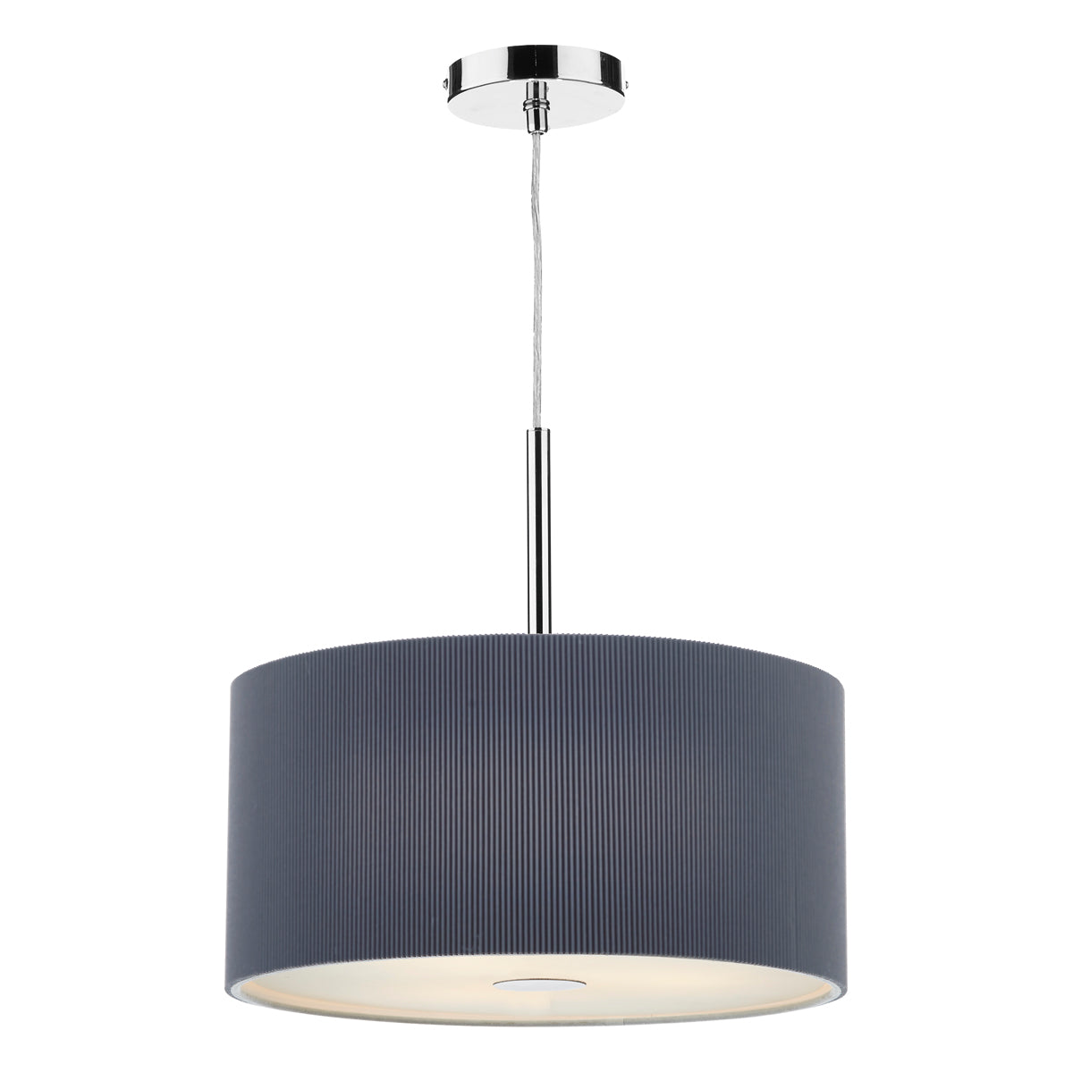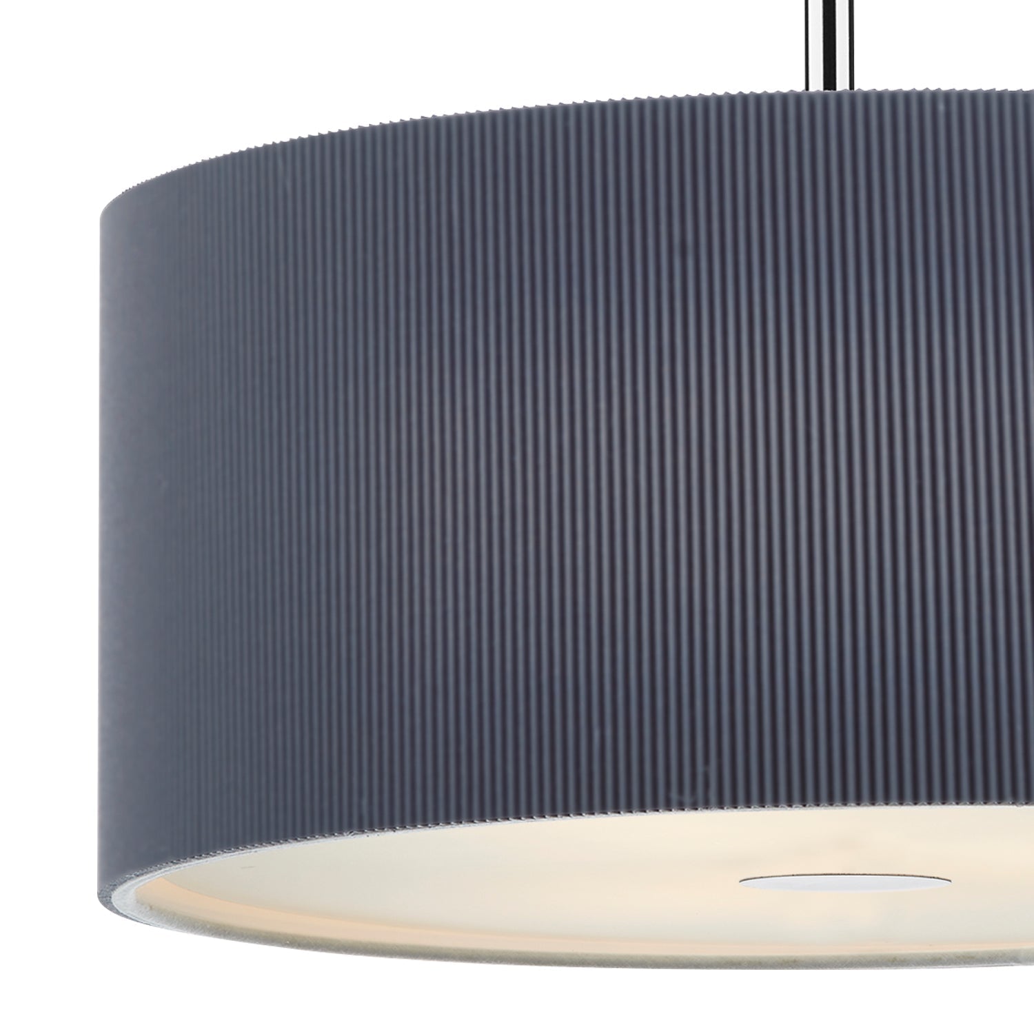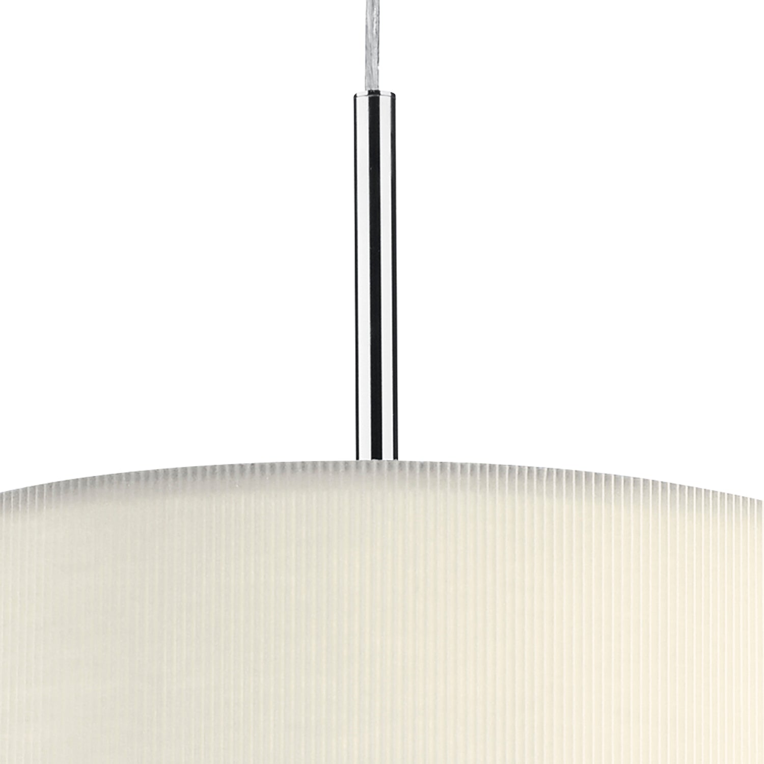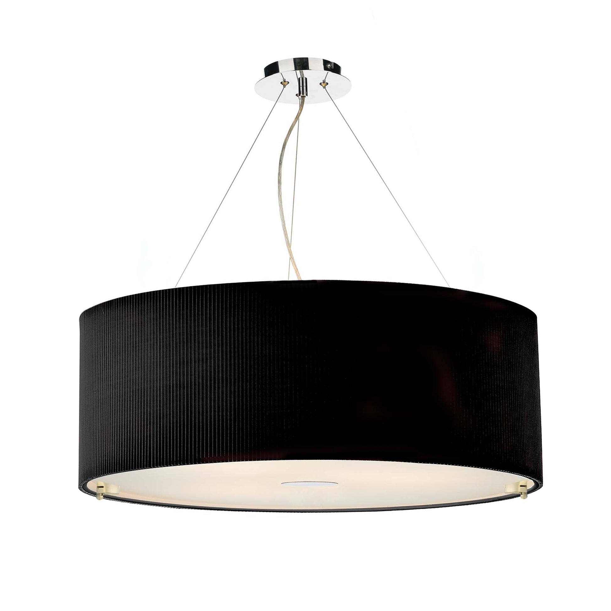 The 90cm Zaragoza 6 Light Pendant features a sleek polished chrome stem and ceiling rose, paired with a micro-pleated cream cotton drum shade. The shallow fabric shade’s subtle ribbed texture adds modern interest, while a frosted acrylic diffuser softens the light for a warm, inviting glow. Height is adjustable at the point of installation (50-300cm). Dimmable when paired with suitable bulbs.