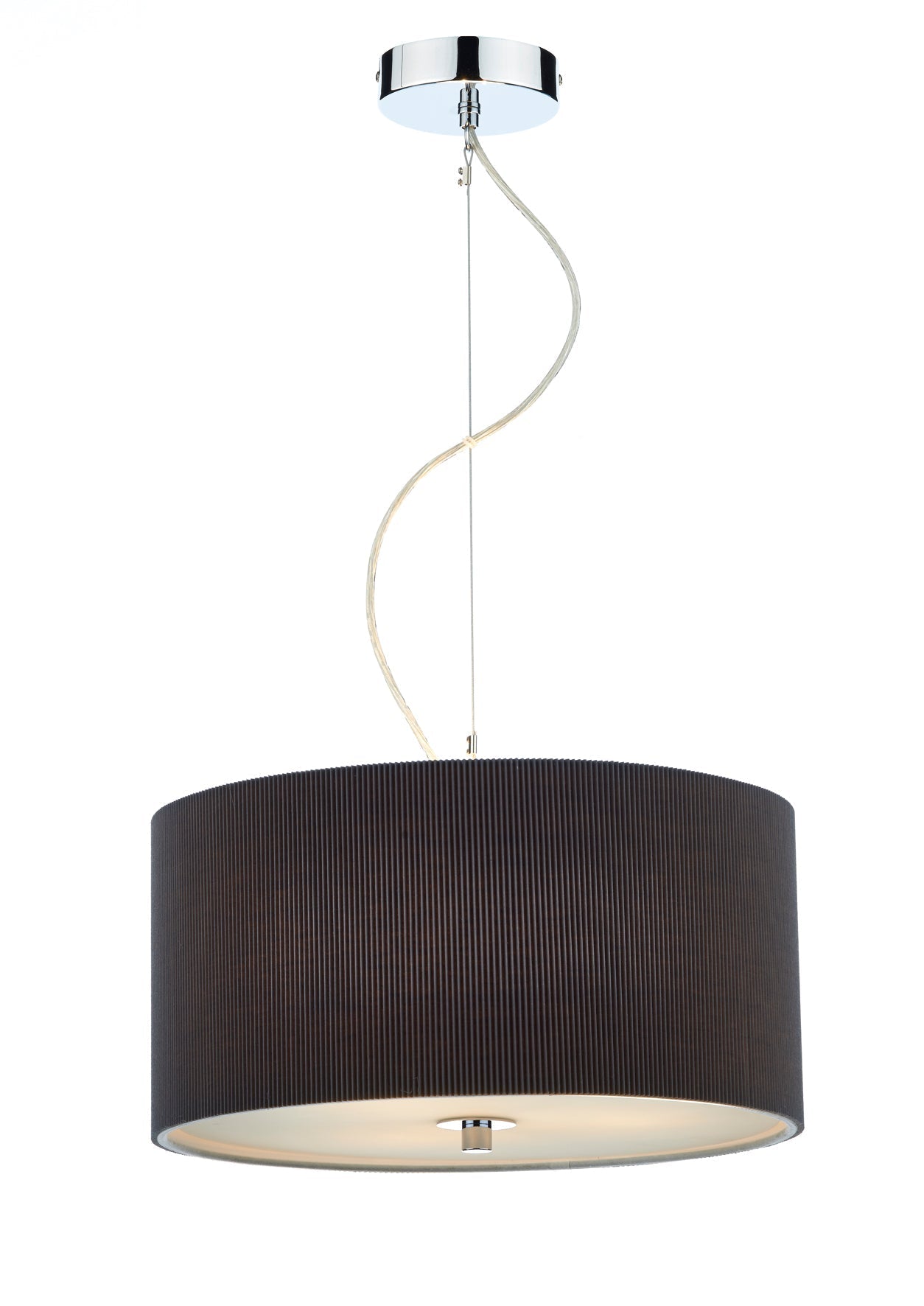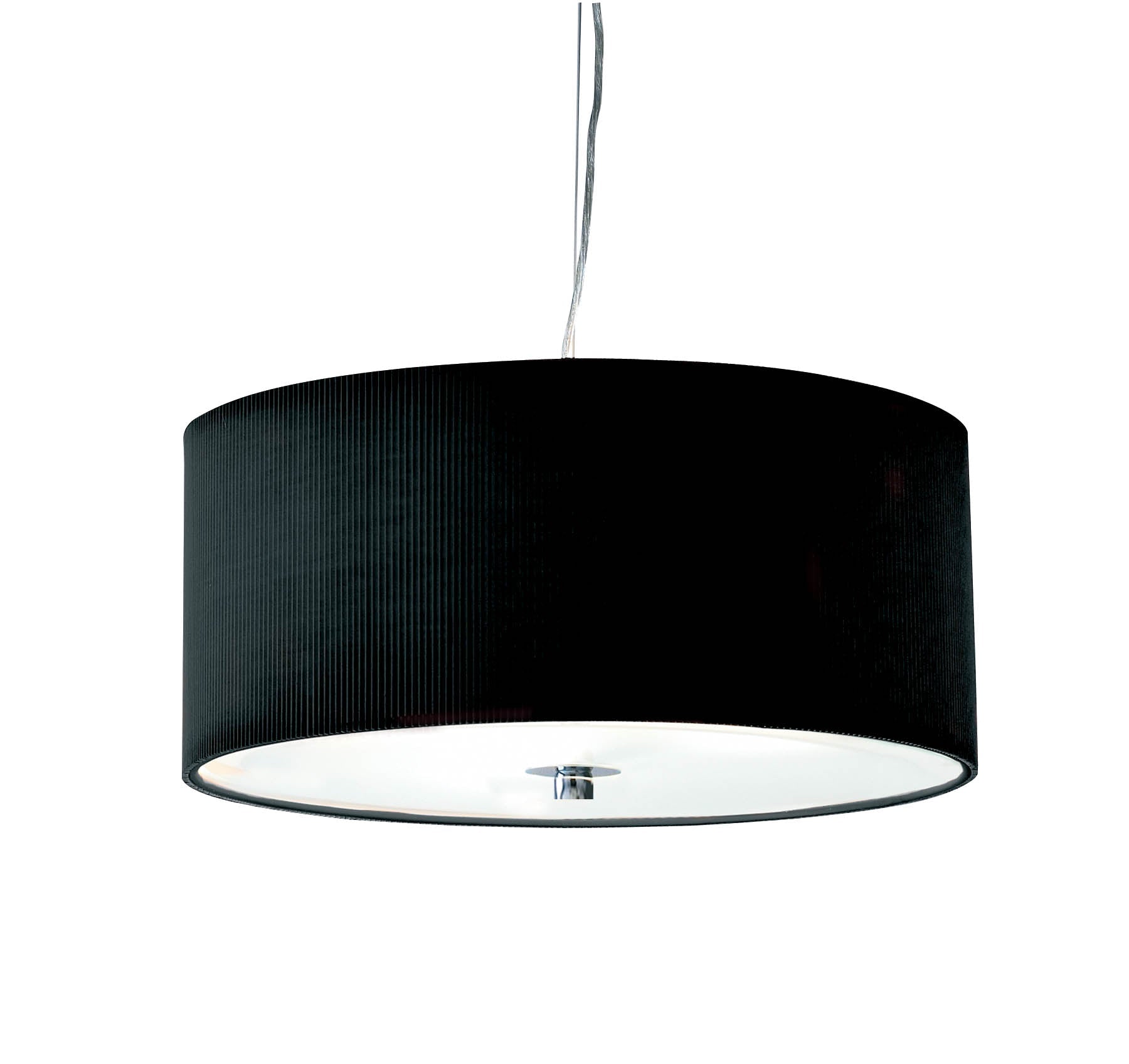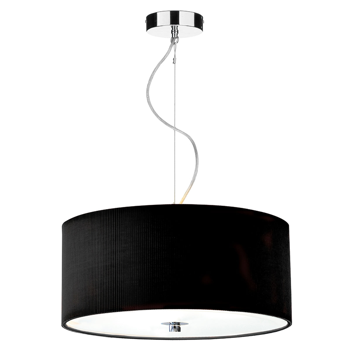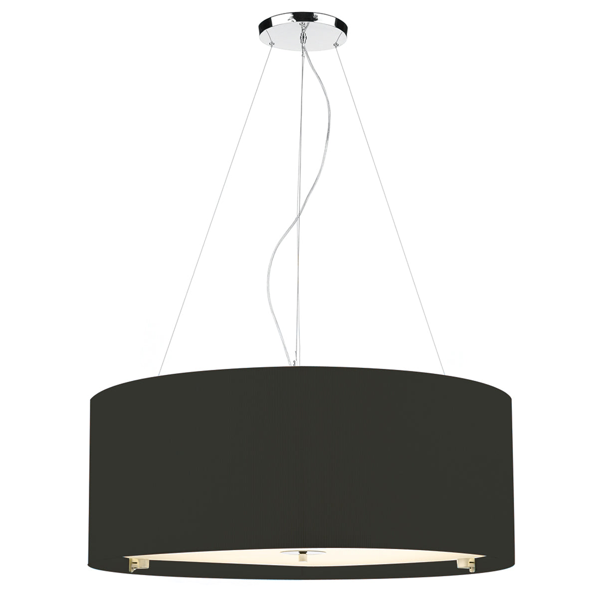 The 90cm Zaragoza 6 Light Pendant features a sleek polished chrome stem and ceiling rose, paired with a micro-pleated cream cotton drum shade. The shallow fabric shade’s subtle ribbed texture adds modern interest, while a frosted acrylic diffuser softens the light for a warm, inviting glow. Height is adjustable at the point of installation (50-300cm). Dimmable when paired with suitable bulbs.