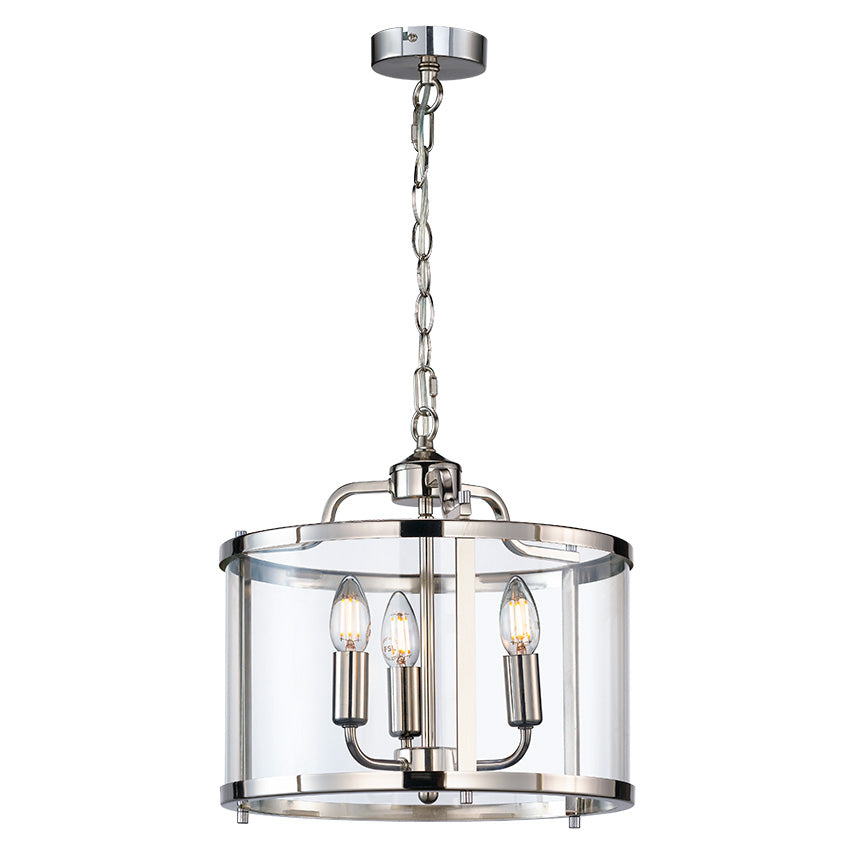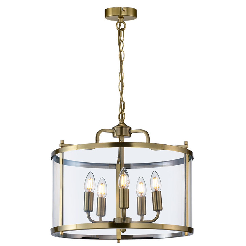 Elevate your space with this elegant Antique Brass 3-Light Drum Pendant. Featuring a sleek cylindrical clear glass shade and a warm antique brass finish, this fixture perfectly blends modern sophistication with timeless charm. The three candelabra-style bulb holders create a radiant glow, ideal for kitchens, dining areas, or entryways. Suspended by a sturdy adjustable chain, this pendant offers both style and practicality.