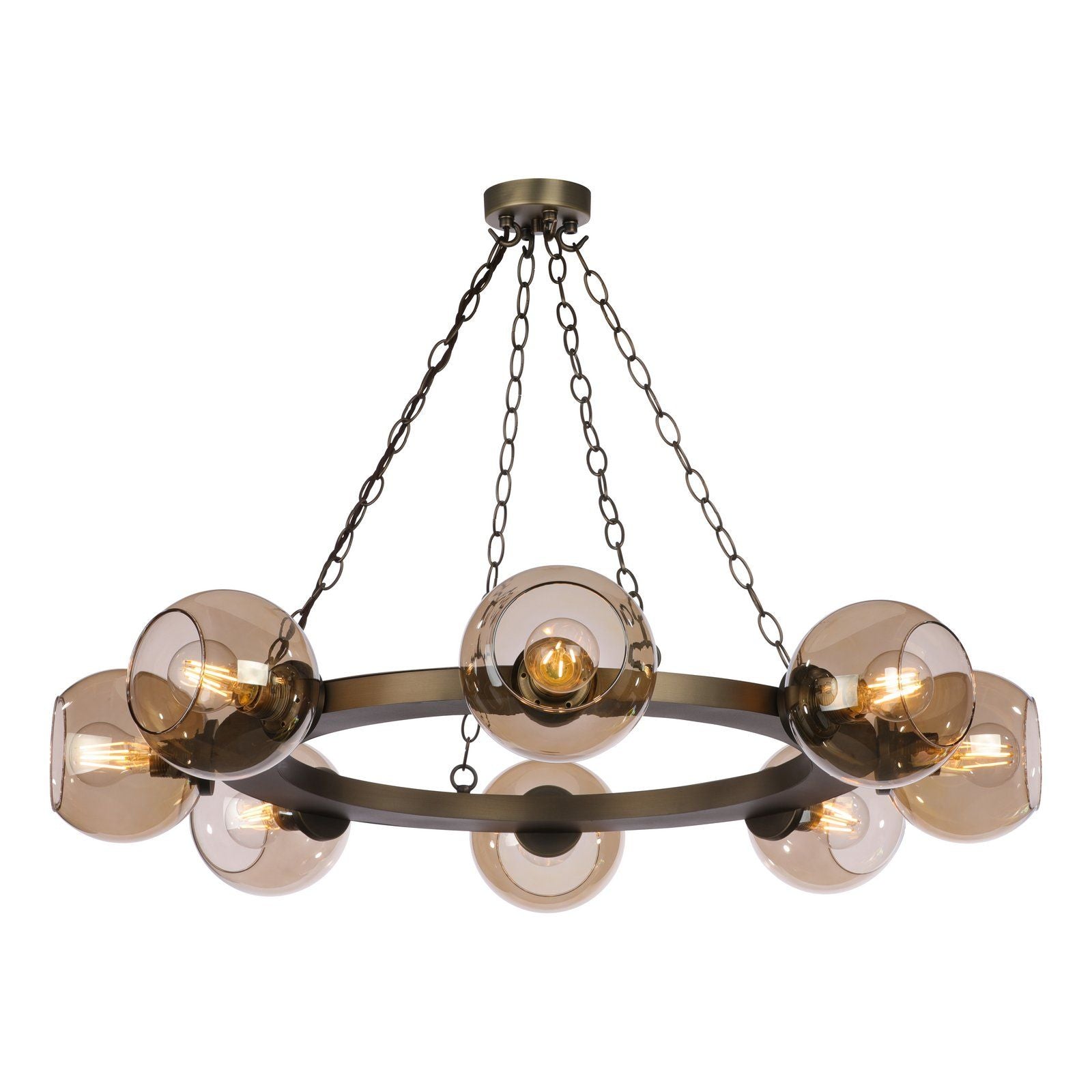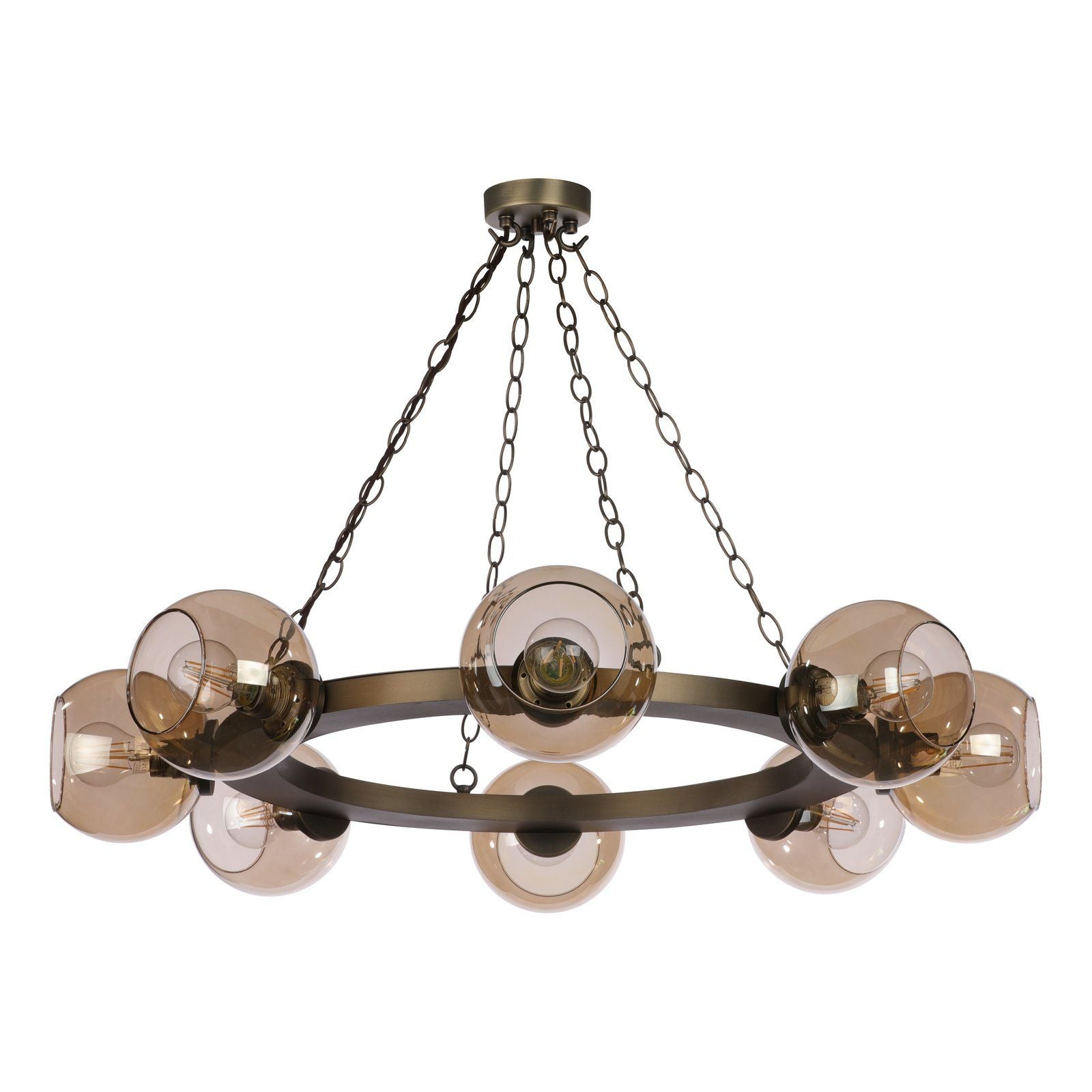 Zeus 8/16 Light Pendant Antique Brass and Amber Glass