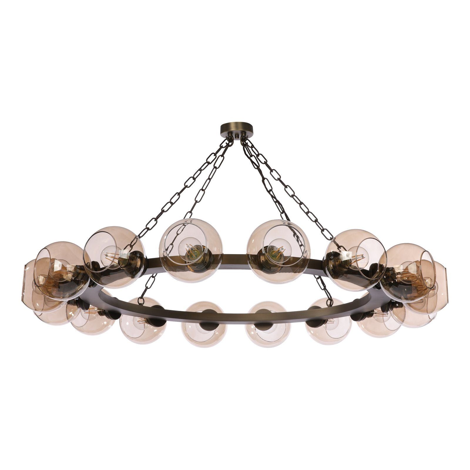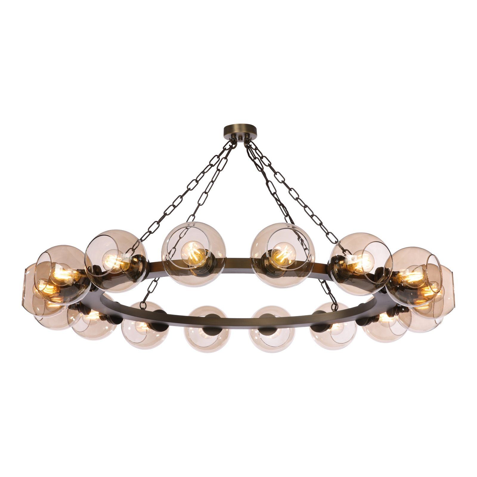 With their luminary crowns of hand blown amber glass, our new Zeus pendants are sure to add real drama to a space.
